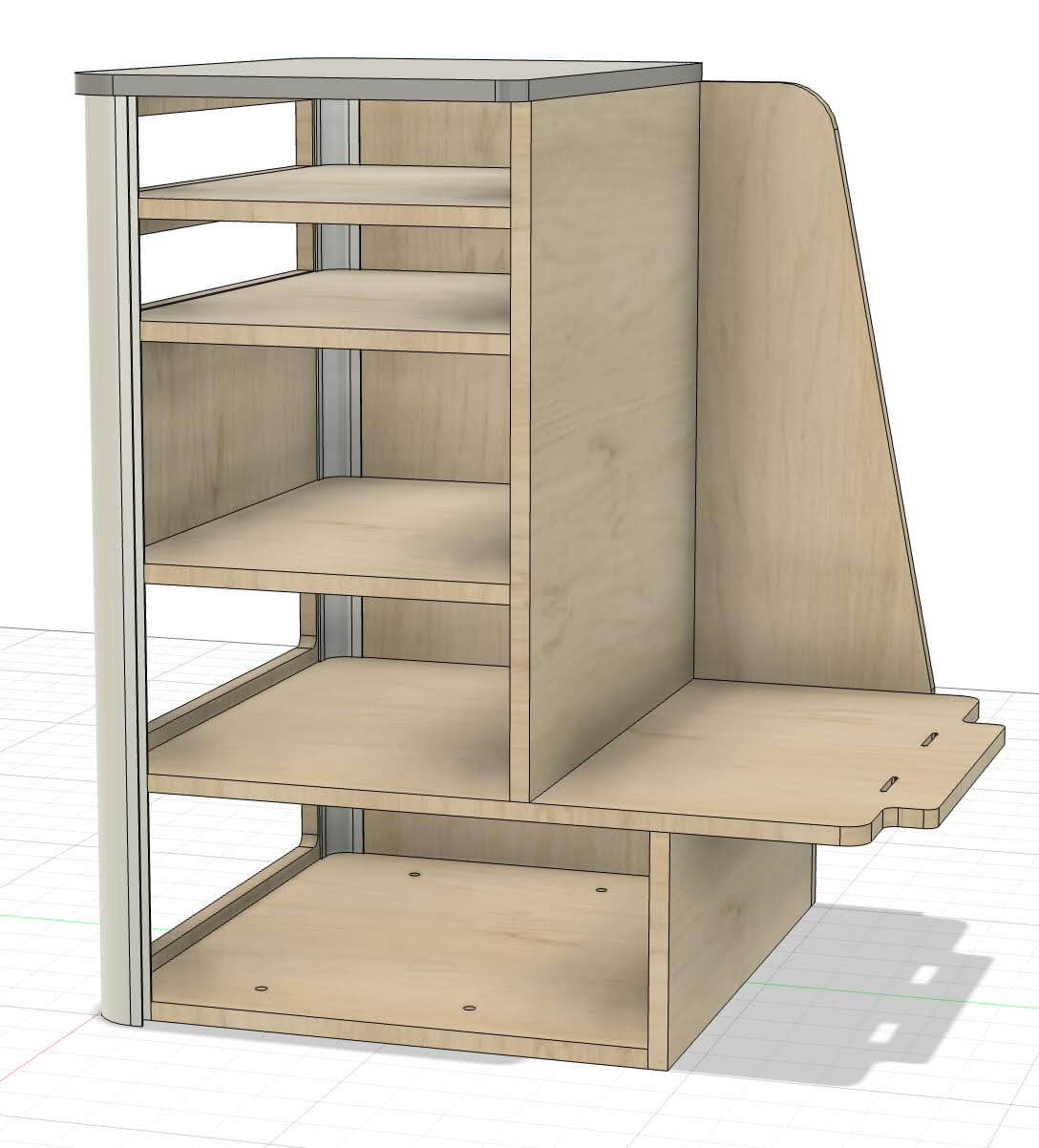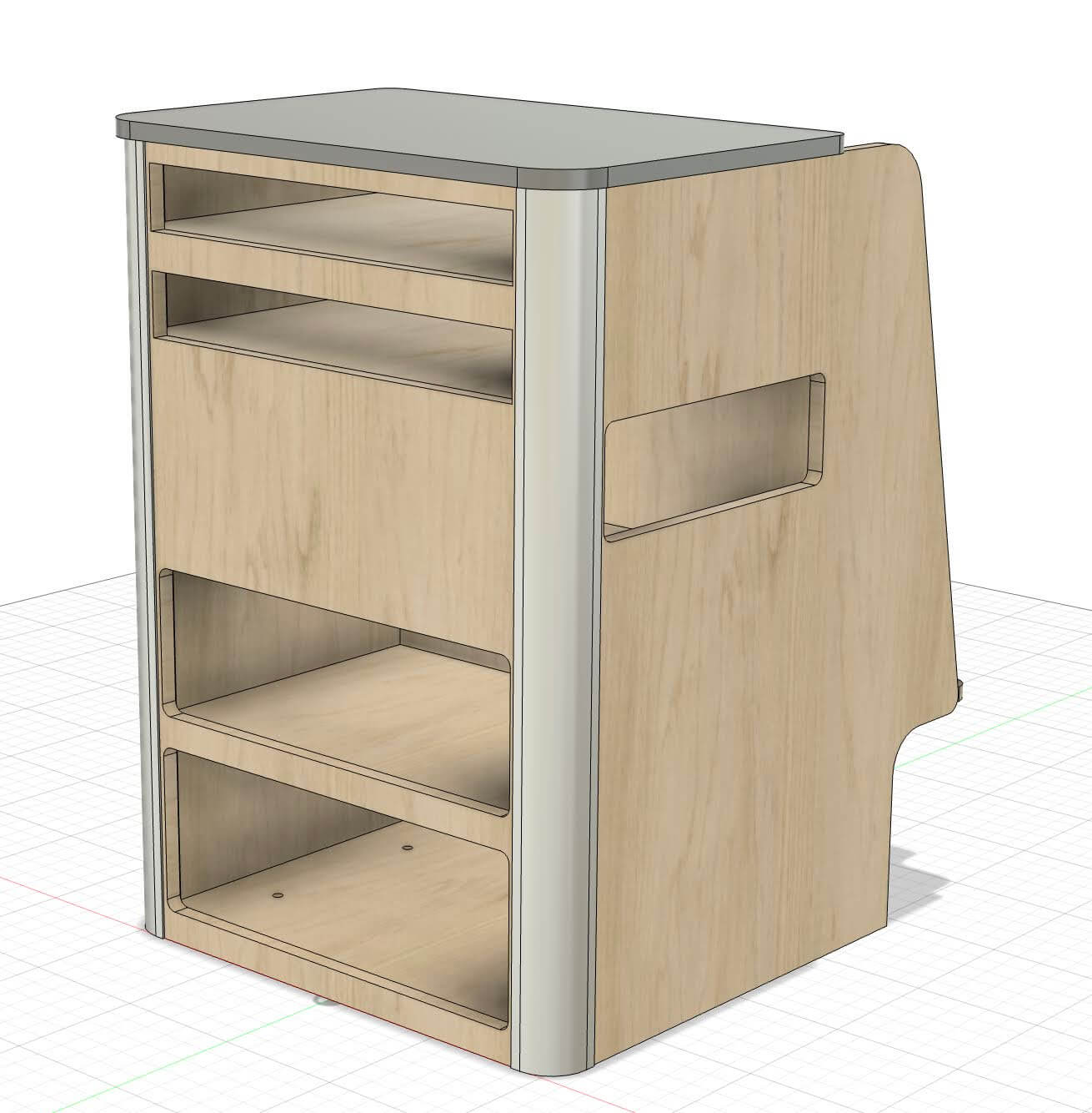 - 16mm veneered plywood: oak outer shell, white shelves and top (custom finishes available)